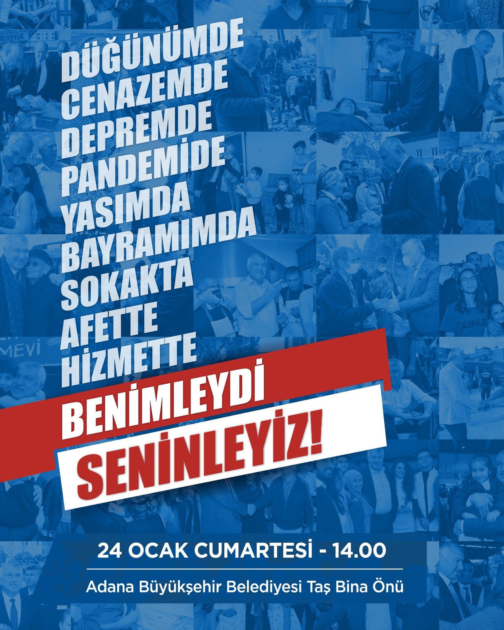 "Haksız ve hukuksuzca Silivri zindanlarına atılan Adana Büyükşehir Belediye Başkanımız Zeydan Karalar, Seyhan Belediye Başkanımız Oya Tekin, Ceyhan Belediye Başkanımız Kadir Aydar ve tüm yol arkadaşlarımıza özgürlük için bugün Adana'da buluşuyoruz."