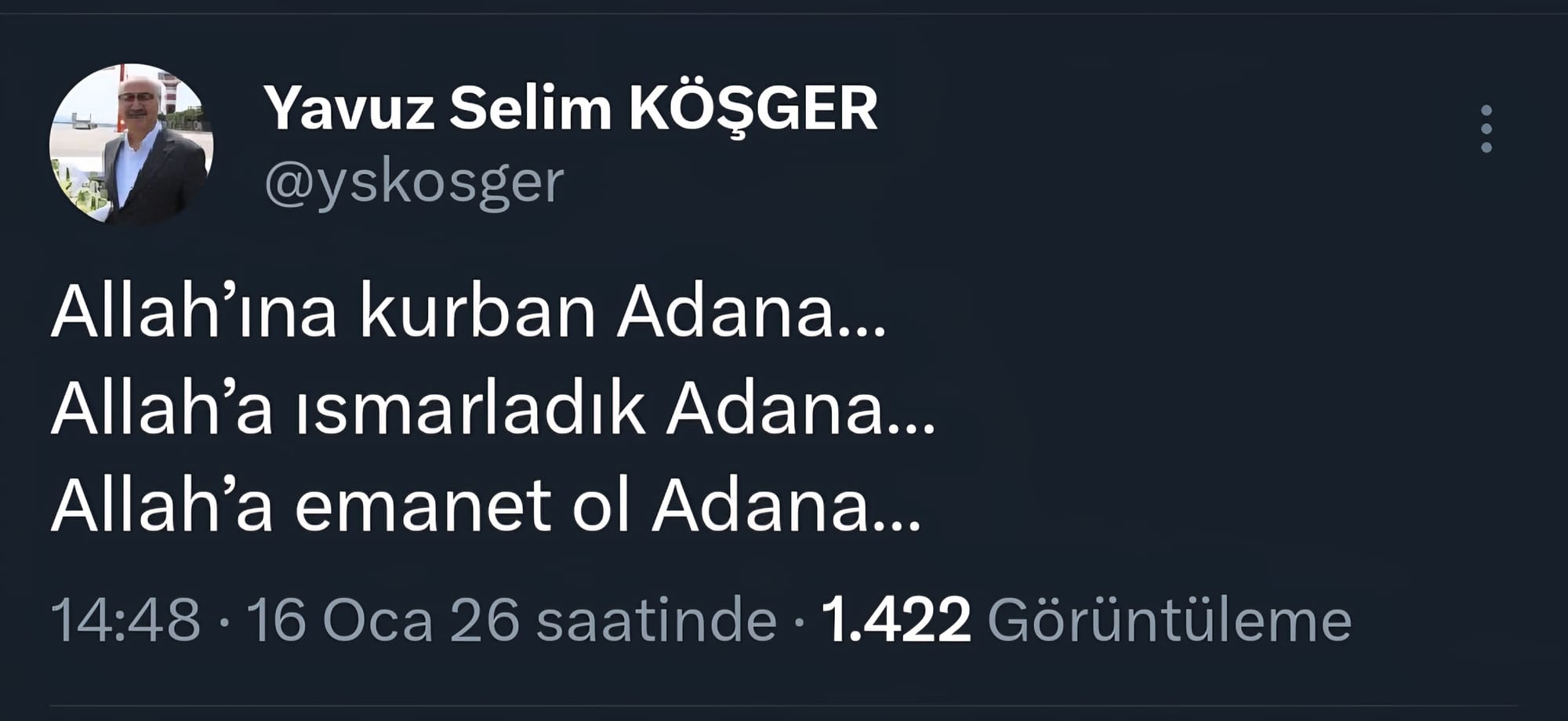 Adana ile kurdukları gönül bağının baki kalacağını vurgulayan Köşger, mesajını şu sözlerle noktaladı: